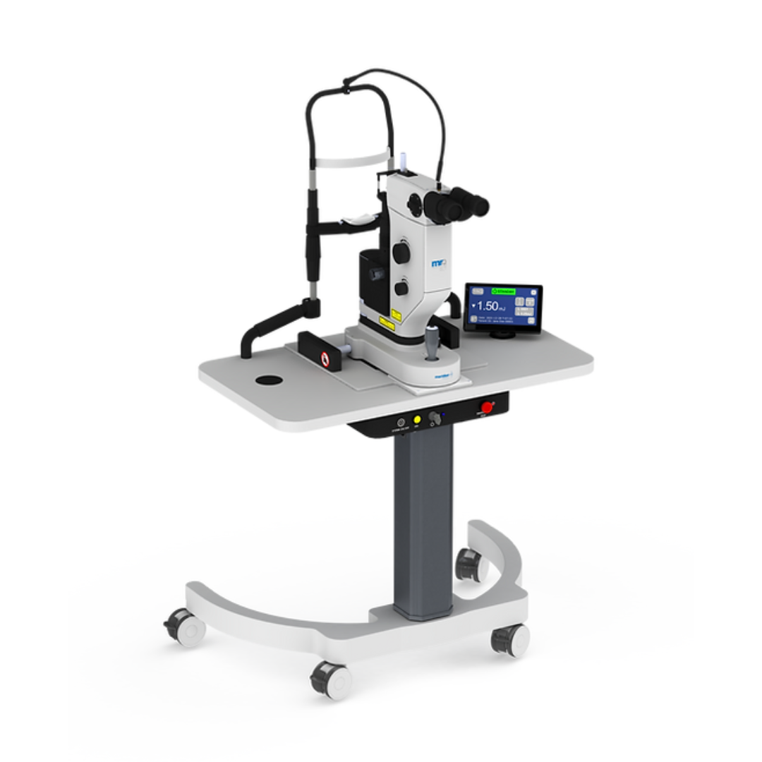 The laser head and slit lamp knobs are ergonomically placed on each side of the slit lamp. The MR Q SLT has proven to be effective in treating open-angle glaucoma as primary therapy.